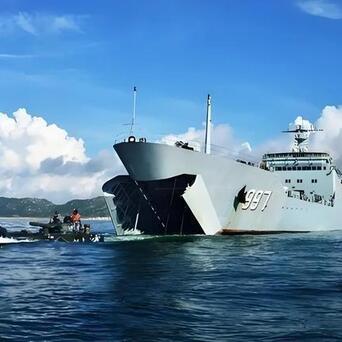 【台媒:解放军2艘两栖登陆舰在花莲巡航近2个月,距离登陆可能不远了】7月18日,有台媒报道称,解放军南海舰队辖下的2艘072A型大两栖登陆舰,从6月起就一直在台岛东部海域往来巡航。一艘是6月初出港的“云雾山”号(舷号997),一艘是6月中下旬抵达台东外海大约30海里的“万羊山号”(舷号995)。两舰都没有进行甲板训练,但一直在距离台岛大约25海里的地方活动。